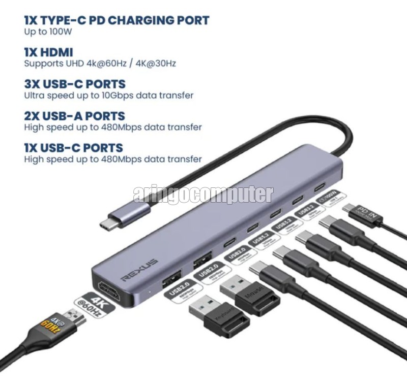 RXT-811 8 in 1 TYPE C (HDMI 4K,TYPE C,USB) Rp. 315.000 - ROBOT